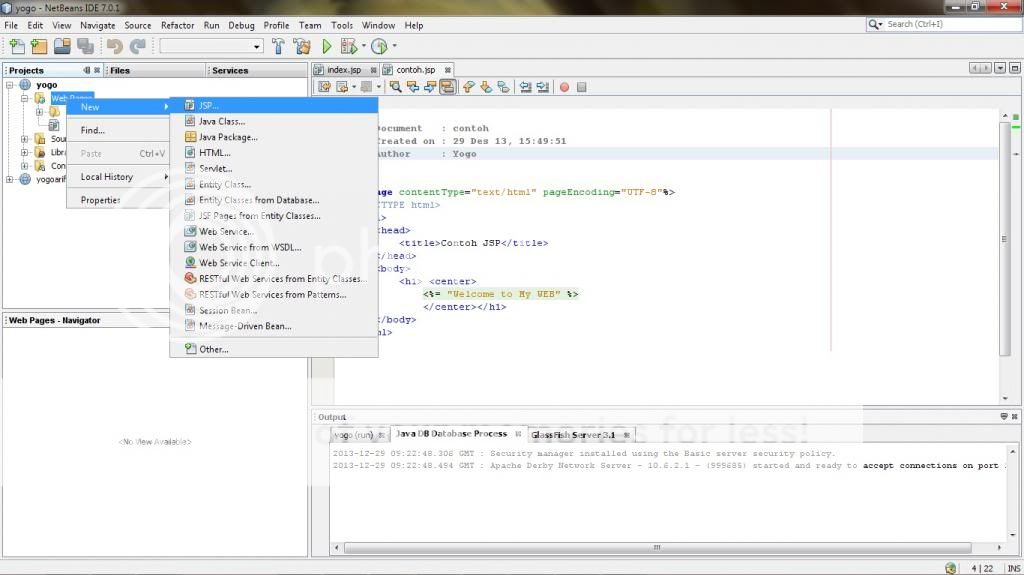 Klik kanan Web Pages > New > JSP